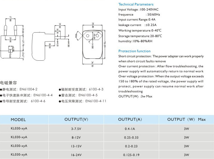 短路保護(hù): 電源適配器在短路解除時能正常工作恢復(fù)