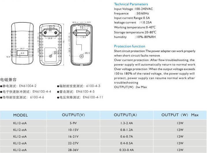 短路保護: 電源適配器在短路解除時能正常工作恢復(fù)